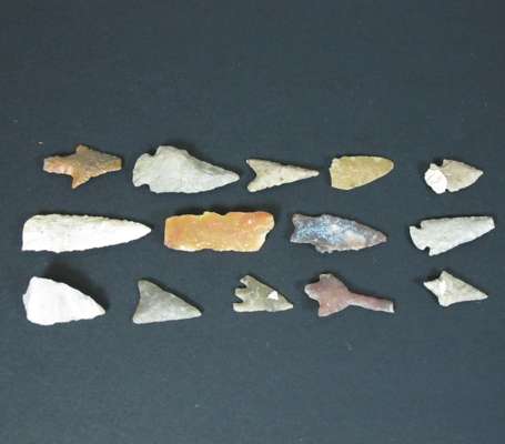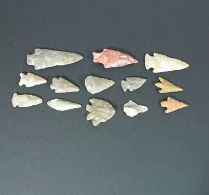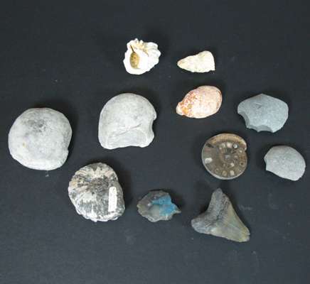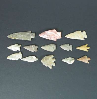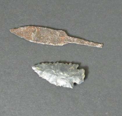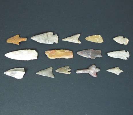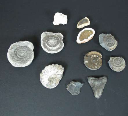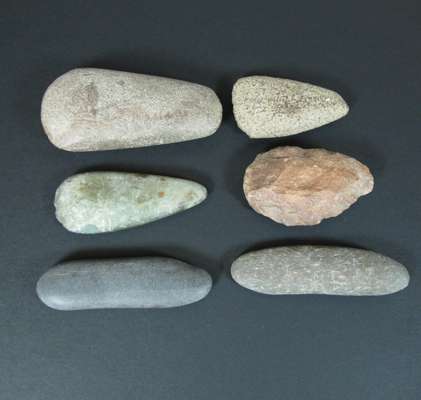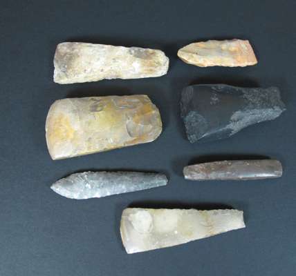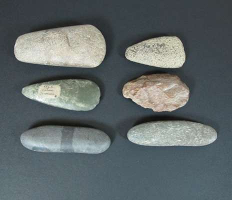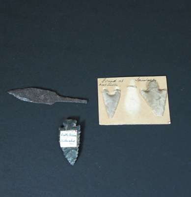 The collection of stone axe heads include an example from Egypt, a greenstone [of Langdale, Cumbria] example found in Dumfriesshire. Two examples from the West Linton area can be found amongst the arrow heads. The fossils include six ammonites and a shark's tooth.