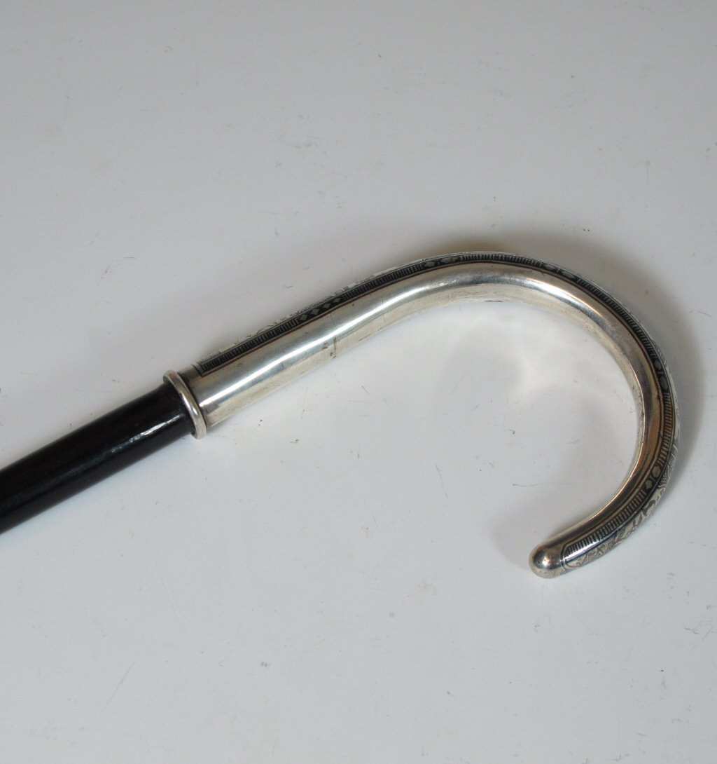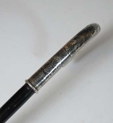A 19th century niello handled walking stick Probably Russian