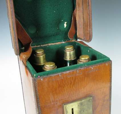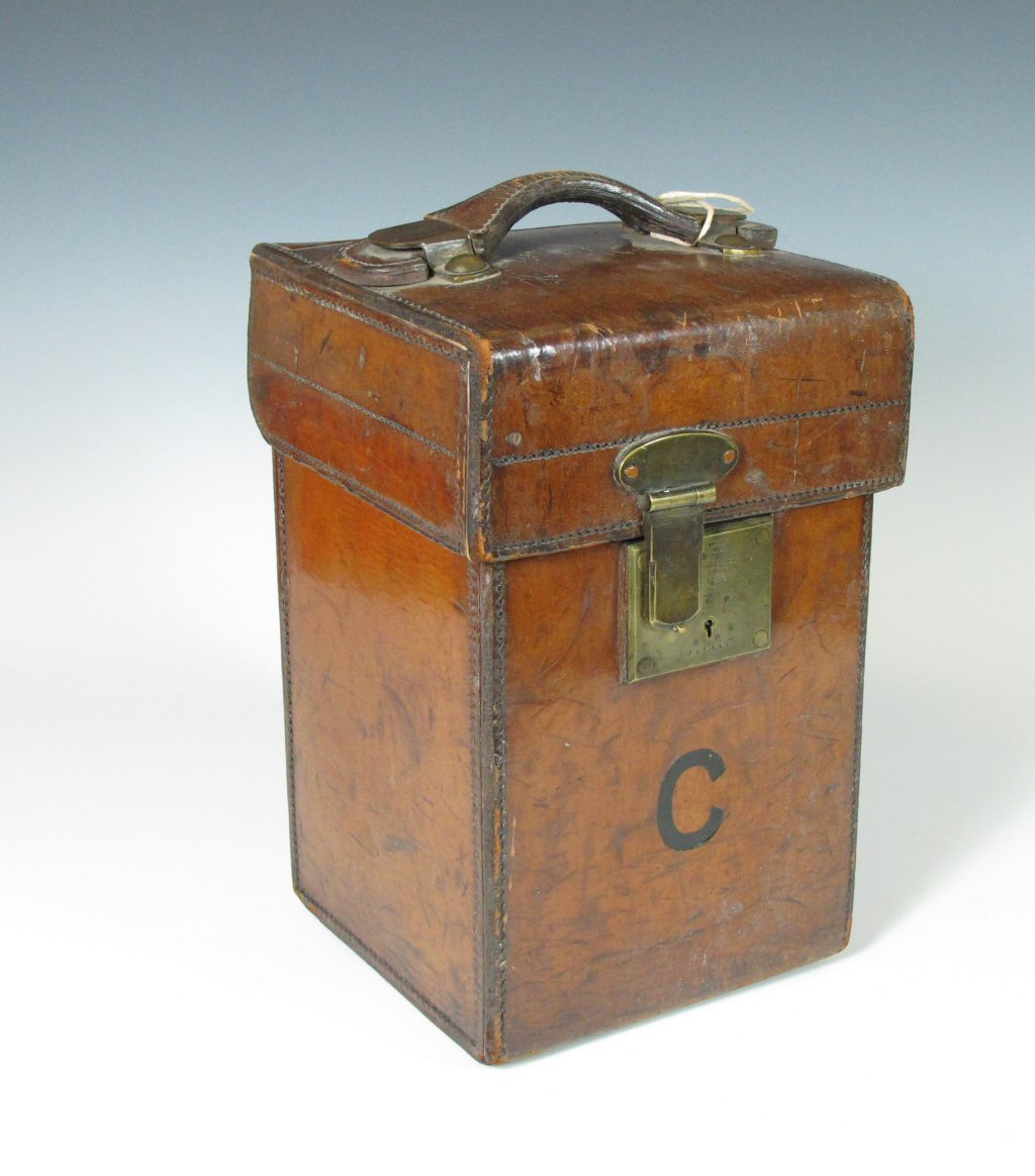 A late 19th century leather decanter box By J. W. Allen, 37 Strand, London