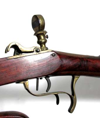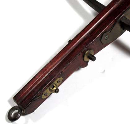 with set trigger and early replacement cord, the hardwood tiller with brass mounted peep sight and plain quarrel groove