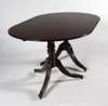 the crossbanded reeded rounded rectangular top raised on a baluster column with reeded sabre tripod legs terminating in brass paw feet with caps and castors; including two additional leaves