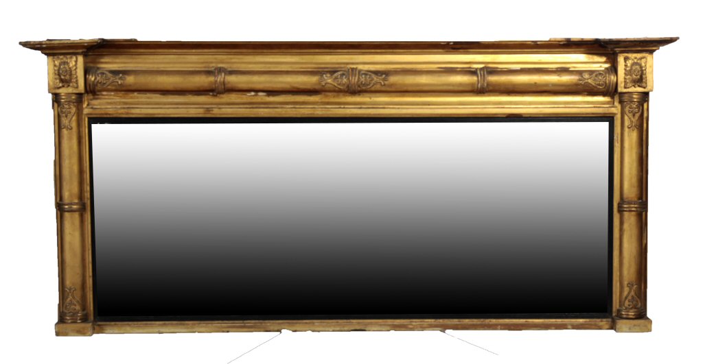 the projected moulded cornice over pilaster frieze, mirror plates with readed ebony fillets flanked by pilasters