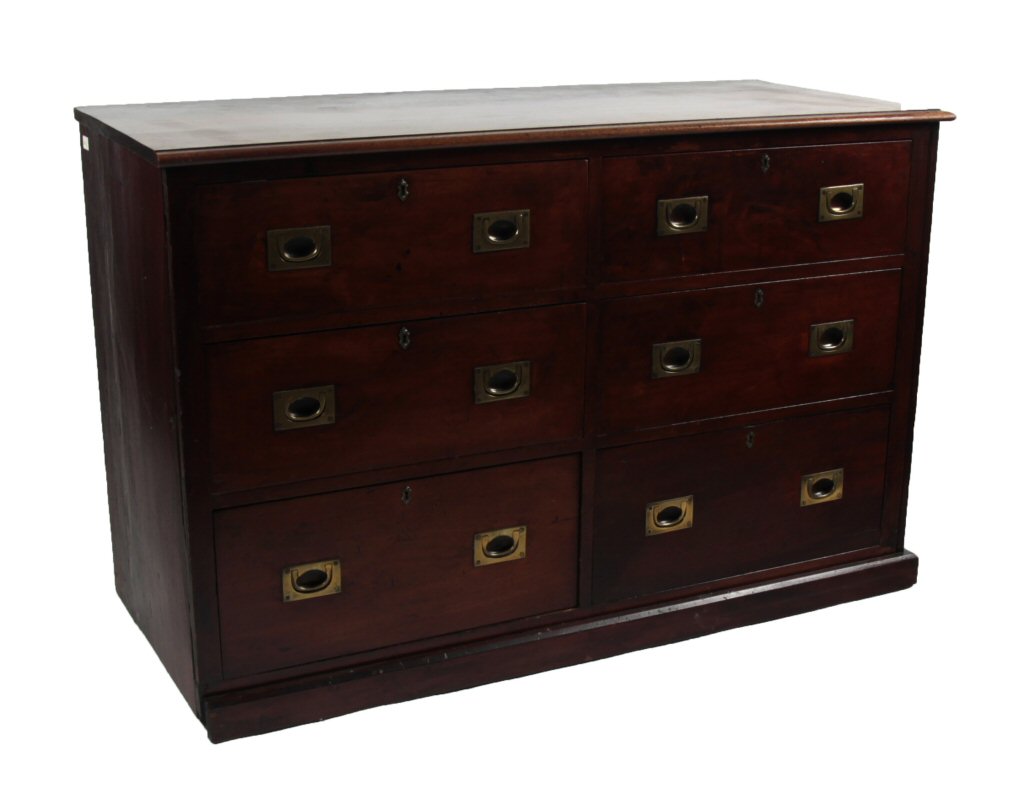 A late 19th/ early 20th century mahogany chest Formerly part of a boat cabin interior