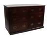 the moulded rectangular top over two banks of three short drawers raised on a plinth base