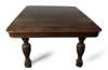 the moulded rectangular top over a plain frieze raised on fluted baluster turned legs terminating in bun feet