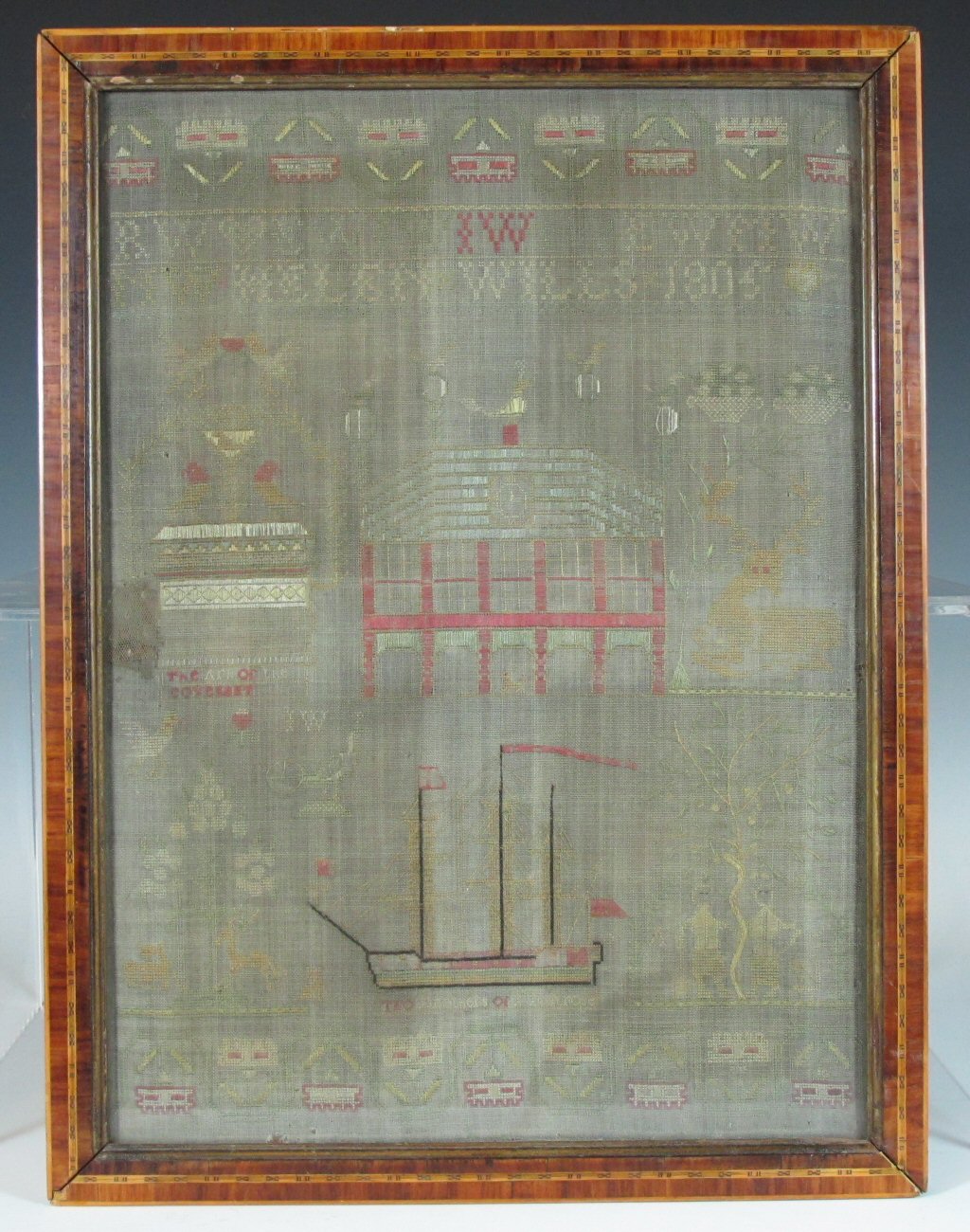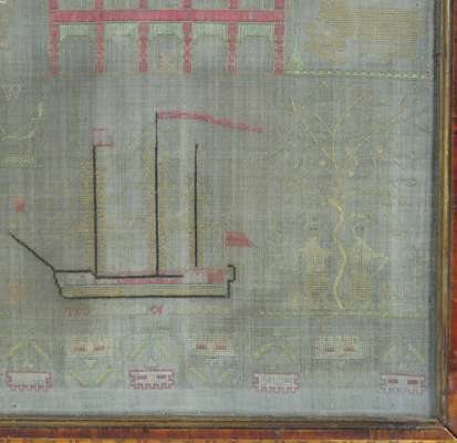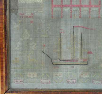 depicting a house over a ship with inscription 'Two brothers of Montrose', surrounded by foliate and animal motifs