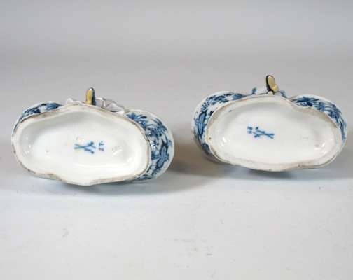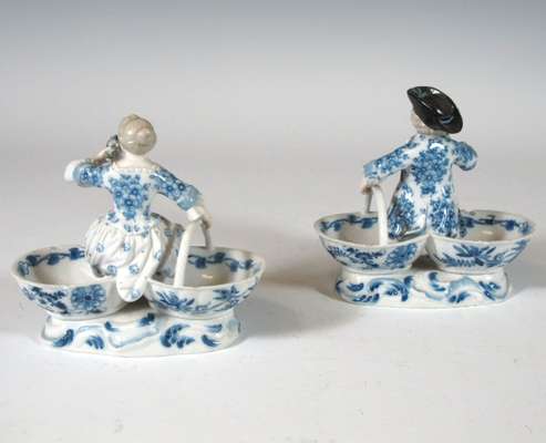 A pair of 19th century Meissen blue painted double salts