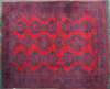 20th century, the red field with three columns of palmettes and cruciform motifs, within indigo rosette and diagonal border between red bands