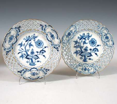 A 19th century matched Meissen 'blue onion pattern' porcelain fruit service