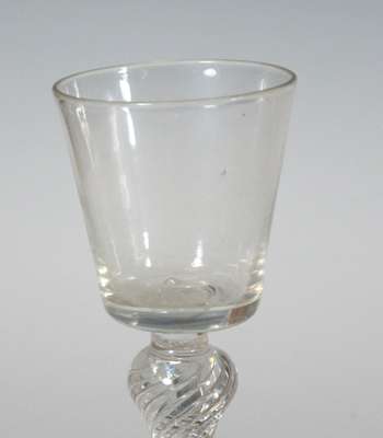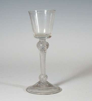 the bucket bowl over a double baluster multiple spiral air twist stem and conical folded foot