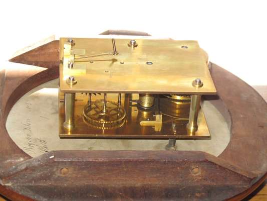 eight day movement with single fusee, the cream circular dial with black Roman numerals