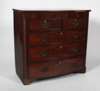 the projected top over two short and three graduated long drawers flanked by barley sugar twist quarter columns, raised on bracket feet