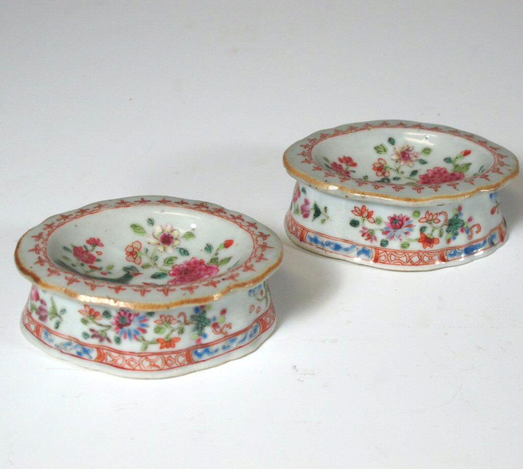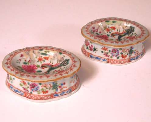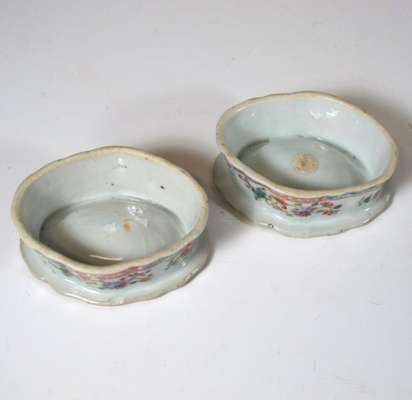 each of shaped oval form, decorated with birds, flowers and rocks (2)