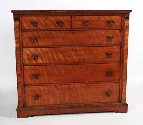 An Aesthetic movement satin birch chest By Fras & JAS Smith Manufacturer, Corner of Gordon, Union Str, Glasgow
