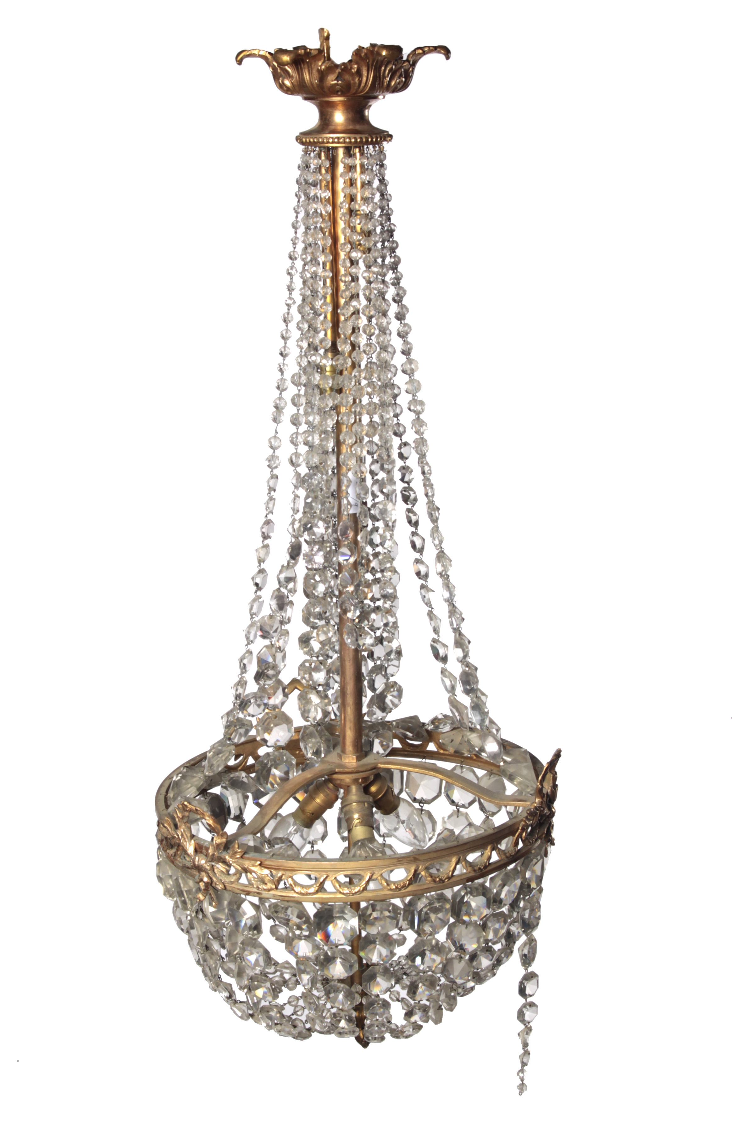 A cut glass and gilt metal chandelier
