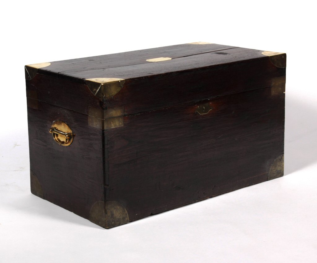 with brass name plate to the lid, over end handles