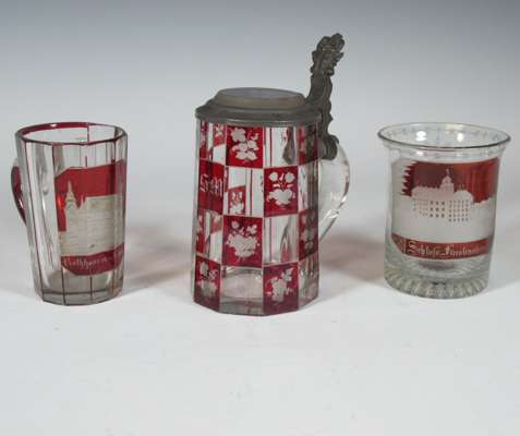 each with etched landscape scenes, assorted shapes and sizes (11)