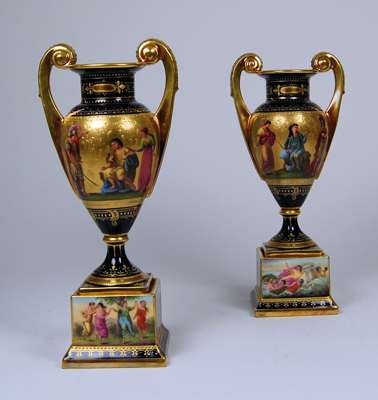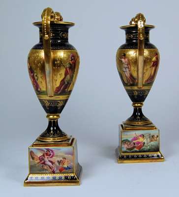 A pair of early 20th century Vienna vases Decorated by Franz Dörfl