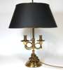 each with twin scrolled branches over a knopped column with a fixed black toleware shade (2)
