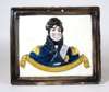 of rectangular form decorated with the king in a blue tunic above a yellow ribbon titled 'King George IIII'