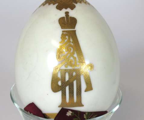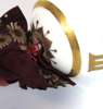 decorated with a gilt cipher and threaded with a maroon coloured foliate design ribbon