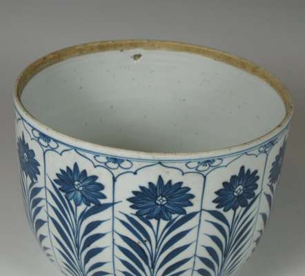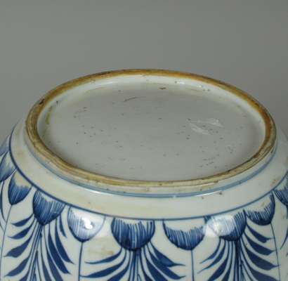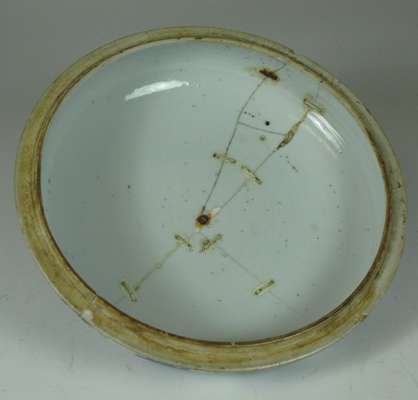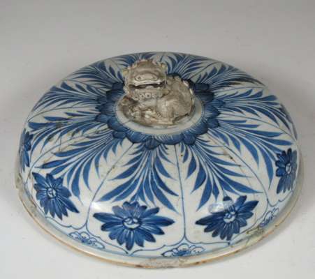 the cover decorated with a biscuit kylin finial, the body of circular form with a floral pattern (cover restored)