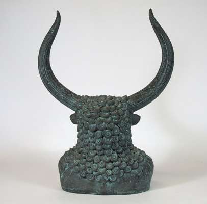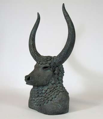 A patinated stoneware sculpture titled 'Minotaur', circa 1990 By Ken Ryan §