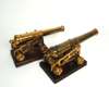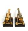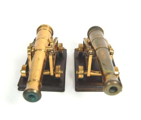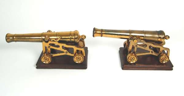 on brass garrison carriages with foldover elevator quoins, one signed Parker Field on the base ring