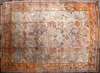 late 19th/early 20th century, the faded blue field with allover palmette and foliate vine pattern, within pink rosette and diagonal branch border between bands