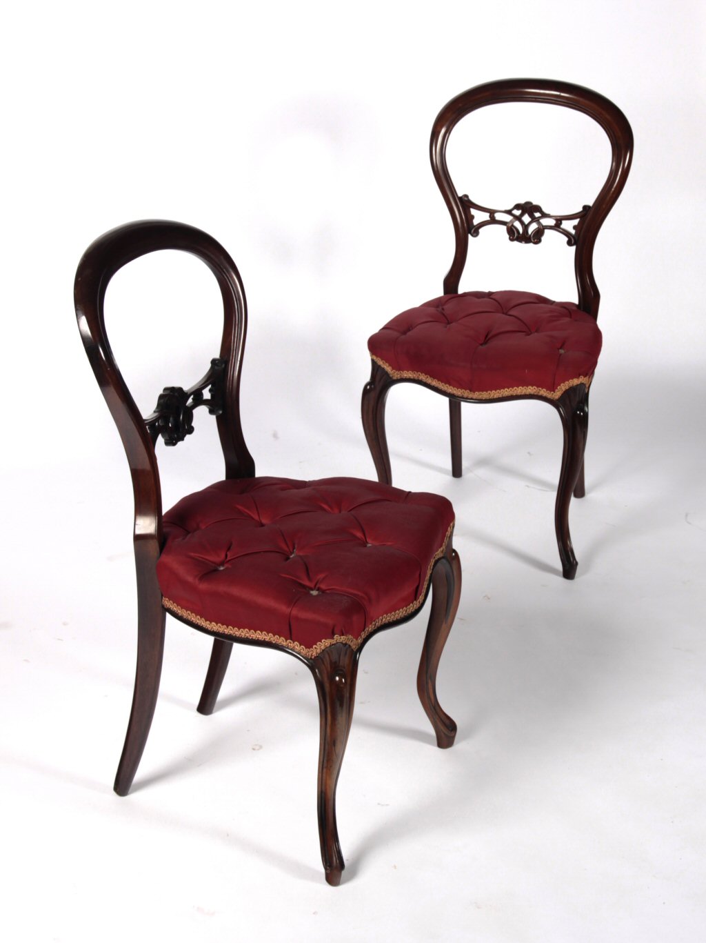 A set of seven Victorian rosewood balloon back chairs Stamped '2281'