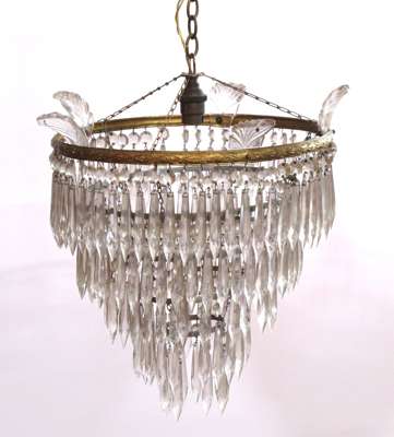 A pair of early 20th century gilt metal cut glass hanging lustres