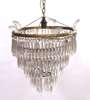 each with five circular graduated rings of hanging lustres below five foliate shaped glass finials (2)