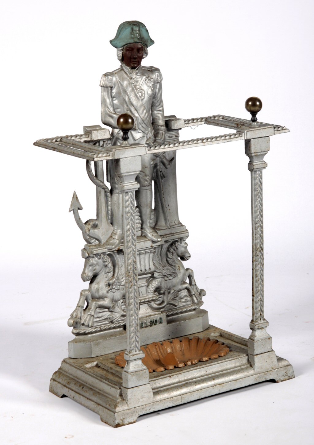 the back plate depicting the Admiral standing over sea horses, drip tray, with rope twist rail, stamped Rd 114928