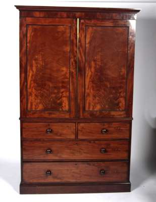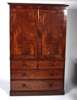 the projected moulded cornice over a beaded friezeabove two panelled doors, enclosing slides, the base with two short and two long drawers, raised on later plinth base