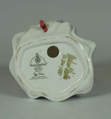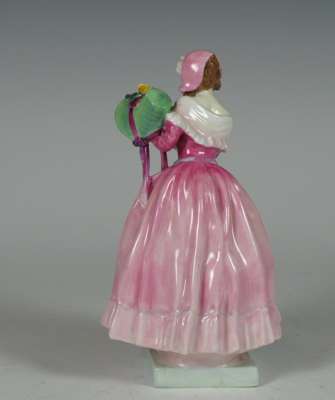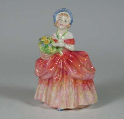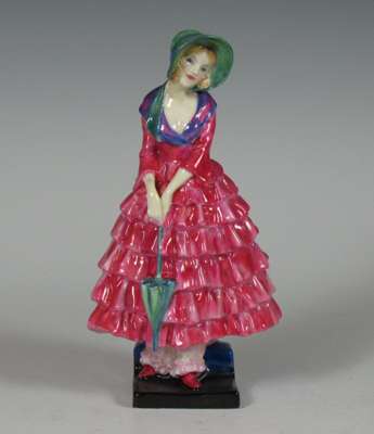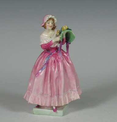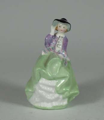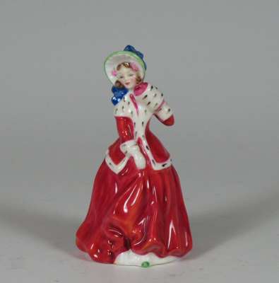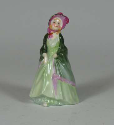comprising: Autumn Breezes, HN1911, 19cm high; A Victorian Lady, HN727, 19cm high; Priscilla, HN1340, 20cm high; Blithe Morning, HN2065, 18.5cm high; Nicola, HN2804, 18cm high; The New Bonnet, HN1728, 18cm high; Cissie, HN1809, 12.5cm high; Top O' The Hill, HN2126, 10cm high; Christmas Morn, HN3212, 10.5cm high; Marie, HN1370, 12cm high; This Little Pig, HN1793, 10cm high; The Paisley Shawl, 10.5cm high; River Boy, HN2128, 10.5cm high; Called Love, HN1545, 9cm high; Doulton figure, impressed mark 357, 9.5cm high (15)