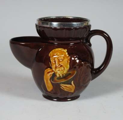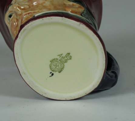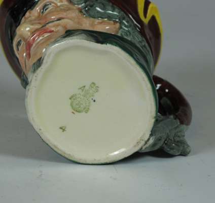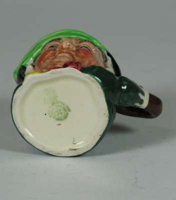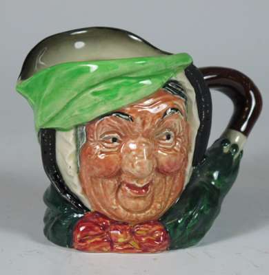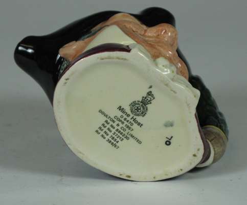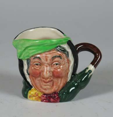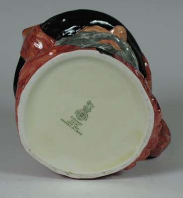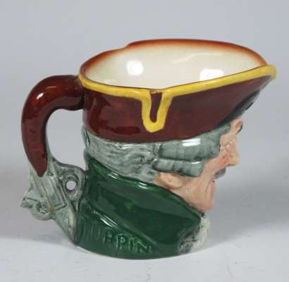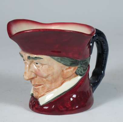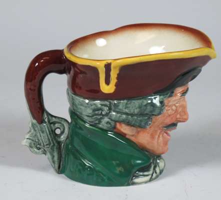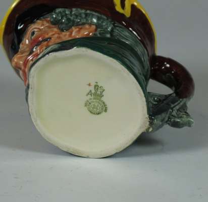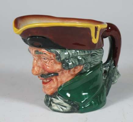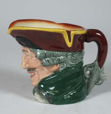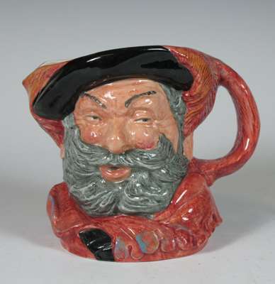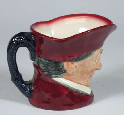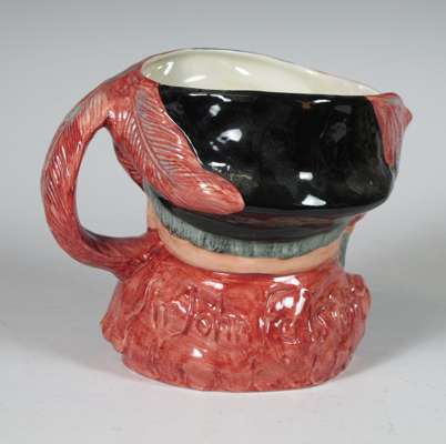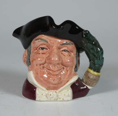 comprising: a Sairey Gamp jug, 8cm high; a Sairey Gamp jug, 5.5cm high; two Dick Turpin jugs, each 8.5cm high; a Cardinal jug, 8cm high; Mine Host, D6470, 9.5cm high; and Falstaff, 14.5cm high; and a Royal Doulton shaving mug with silver rim, 11.5cm high (8)