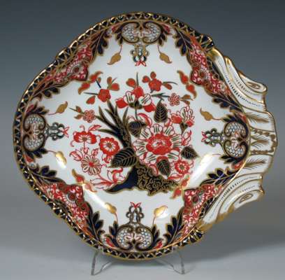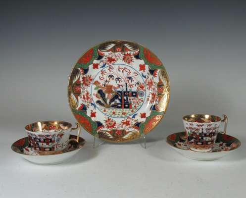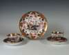 decorated in the imari palette, pattern number '1495', comprising: twelve saucers, nine tea cups, eight coffee cans, two plates, a teapot and cover, a slop bowl; and a Royal Crown Derby imari palette dish, pattern '383'