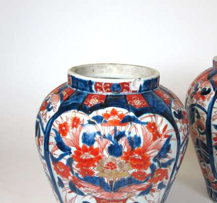 A pair of Japanese Imari jars and covers, Meiji Period