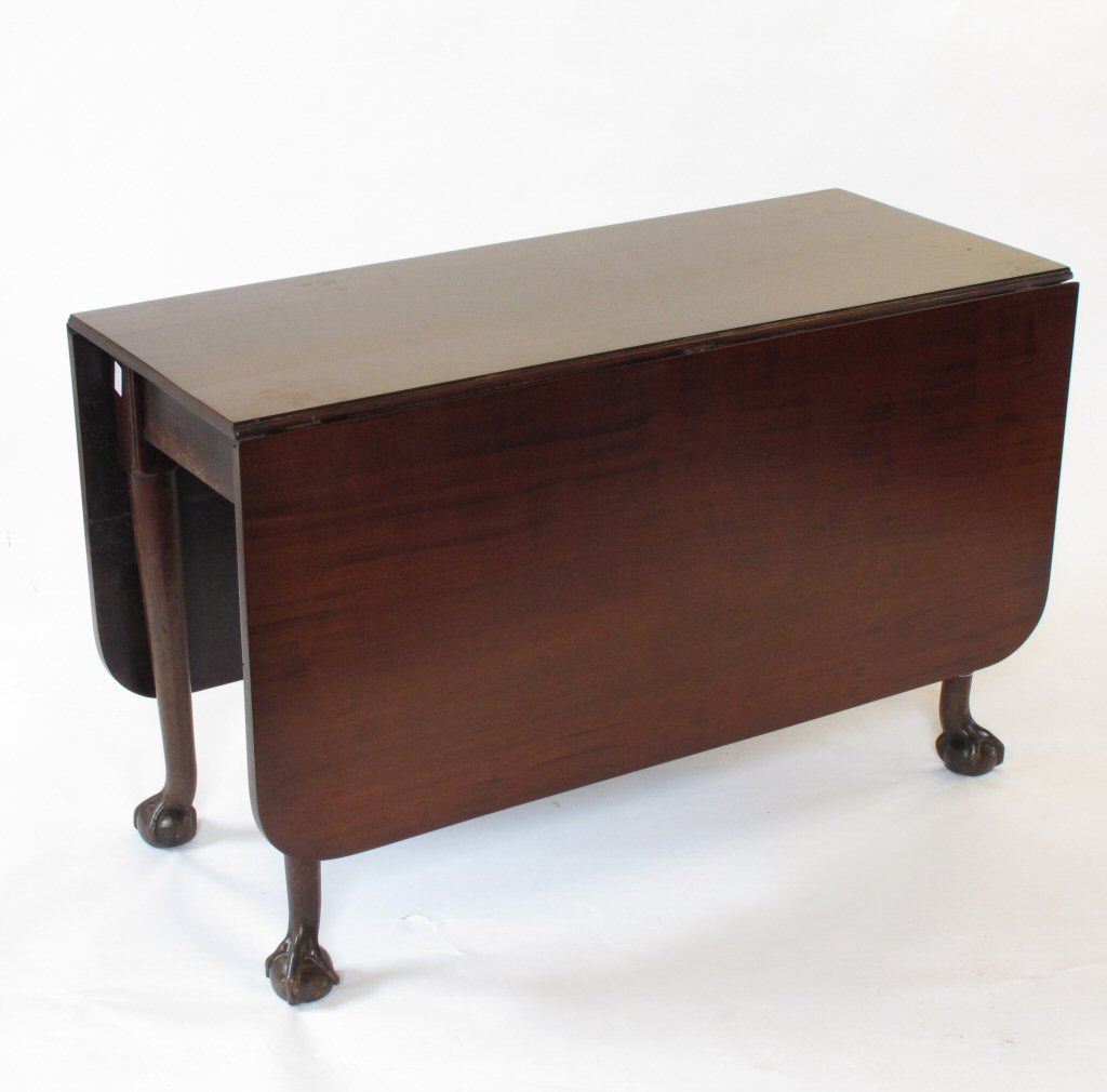 the rounded rectangular top raised on tapering turned legs terminating in claw and ball feet