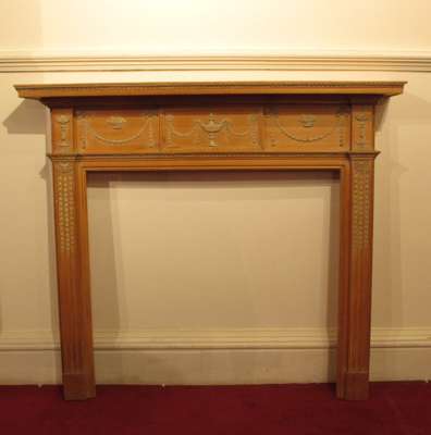 the rectangular top over breakfront frieze panel decorated with urns, swags and garlands, the moulded surround raised on fluted columns, decorated with bluebells, on block feet, label to the rear 'J. & T. Scott, cabinet makers and upholsterers, Devon Place, Edinburgh'