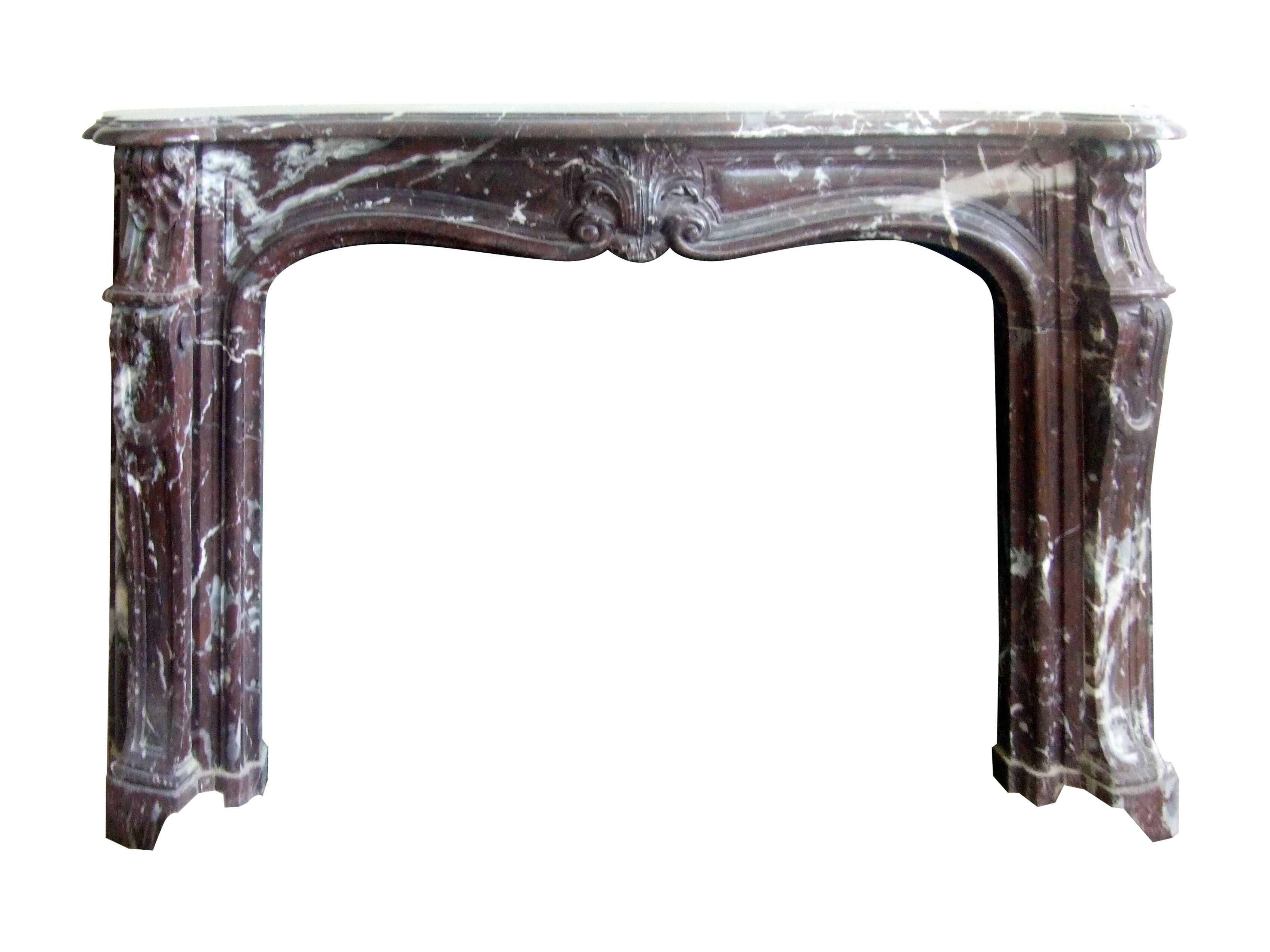 the serpentine shaped mantel above a panelled and foliate carved frieze