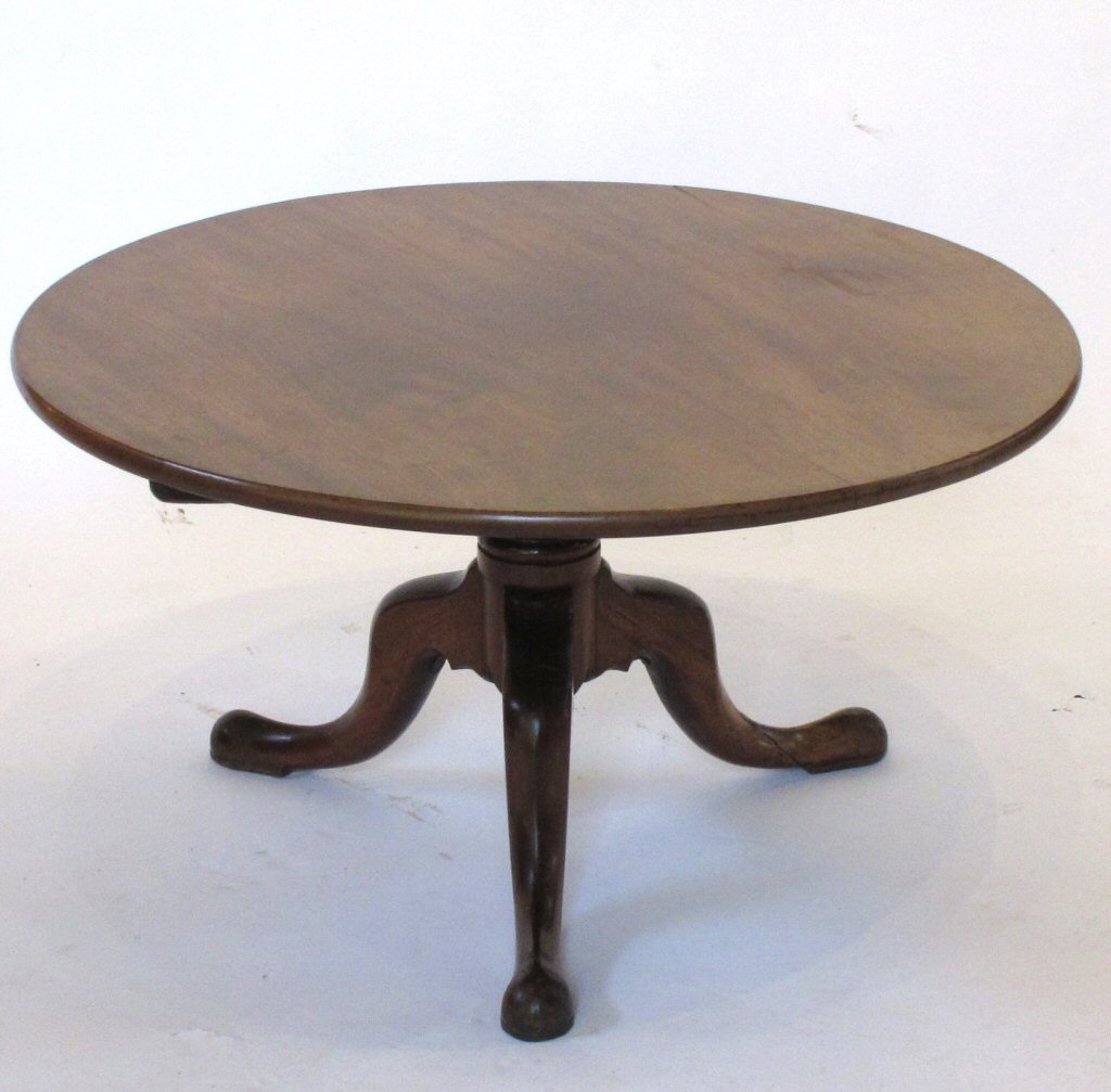 the circular top raised on a turned column support over tripod cabriole legs with pad feet (alterations)