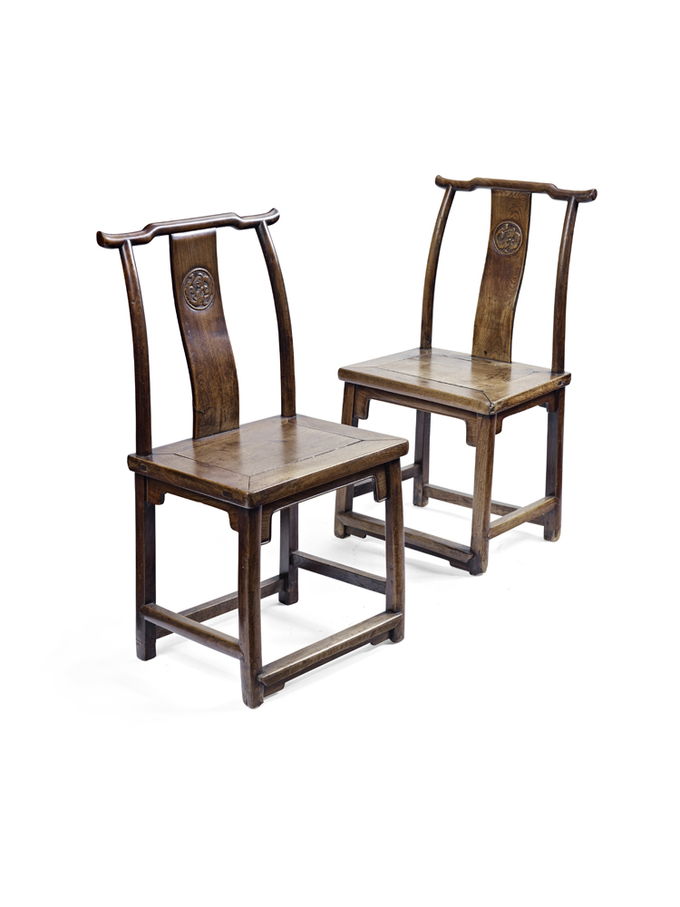 with dragon carved splats above cleated solid seats raised on moulded square legs, united by stretchers (2)