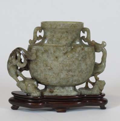 of flattened ovoid from, decorated with phoenixes, on a hardwood stand