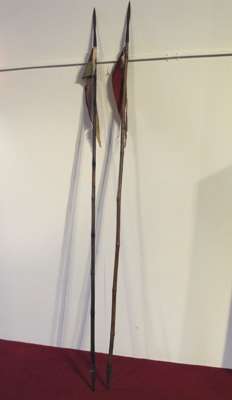 each with a steel head and terminal, a bamboo shaft and a red and white pennant (2)