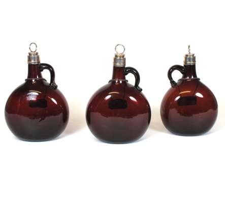 THREE VICTORIAN AMBER GLASS DECANTERS
