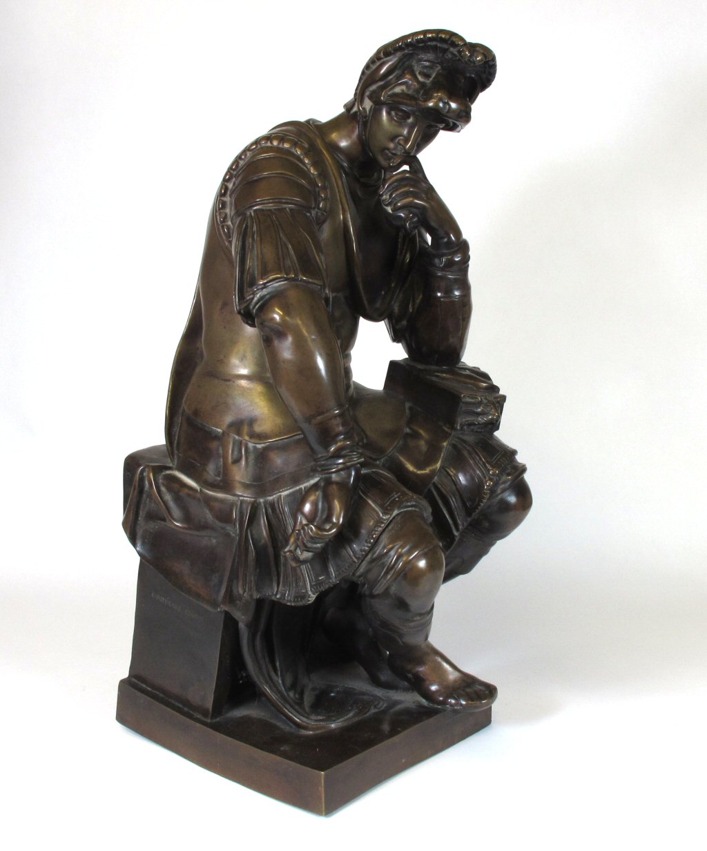 AFTER MICHELANGELO BRONZE FIGURE OF LORENZO DE MEDICI