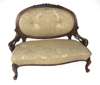 the oval upholstered back over a stuff over serpentine seat, flanked by outstretched arms, raised on cabriole legs