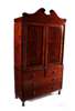 the ebony strung swan neck pediment over two panelled doors flanked by ring turned pilasters, the base with two short and two long drawers, raised on turned legs
