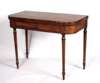MAHOGANY AND EBONY STRUNG FOLDOVER TEA TABLE